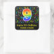 Pegatina Cuadrada Noveno cumpleaños: Símbolos musicales coloridos, a