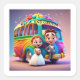 PEGATINA CUADRADA NOVIA Y NOVIO Y EL AUTOBÚS DEL ARCOÍRIS