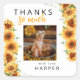 Pegatina Cuadrada Nuestra pequeña foto de cumpleaños de girasol Grac