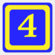 número 4, fondo azul, marco amarillo