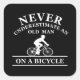 Pegatina Cuadrada nunca subestimar a un anciano en bicicleta