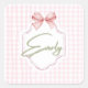 Pegatina Cuadrada Nursery Bow&Gingham personalizada para niñas todas