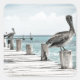 Pegatina Cuadrada Océano costero pelícano
