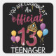 Pegatina Cuadrada Official Teenager 13th Birthday Girl 13 Year Old