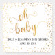 Pegatina Cuadrada "Oh Baby" Relieve metalizado dorado falso Confetti