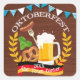 Festival de cerveza Oktoberfest con una taza de cerveza, pretzel, salchicha, una bandera con los colores de la bandera alemana y banderas bávara en la parte superior para celebrar la fiesta de Oktoberfest en otoño.