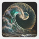 Pegatina Cuadrada Ola de tsunami a la luz de la luna.