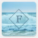 Pegatina Cuadrada Ola oceánica monográfica estrellándose en la orill
