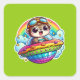 Pegatina Cuadrada Oleador de arcoiris de OVNI