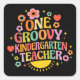 Playful retro lettering with flowers and hearts celebrating kindergarten teachers with creativity and joyful classroom spirit. A cheerful statement for educators who love teaching young children in a warm and friendly learning environment.