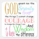 Habitualmente visto con manos rezando. "Dios me conceda la serenidad Para aceptar las cosas que no puedo cambiar; Valor para cambiar las cosas que puedo; Y sabiduría para conocer la diferencia".