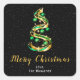 Pegatina Cuadrada Ornamentos verdes y dorados Feliz Navidad