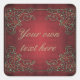 Pegatina Cuadrada Ornate Antique Red and Gold Custom Text