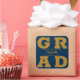 GRAD con letras en negrita de oro llena las esquinas de estos pegatinas cuadrados de fondo azul marino. Felicitaciones por encima del nombre de su graduado y la Clase de abajo. VEA TODA LA COLECCIÓN de combinaciones de colores prehechas, invitaciones, placas de papel, servilletas, carteles y más en nuestra tienda.