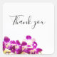Pegatina Cuadrada Orquídea púrpura con piedra en blanco gracias
