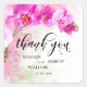 Elegante y artístico Gracias por el diseño de la caligrafía con una impresionante flor de orquídea rosa acuarela y salpicaduras de color verde y rosa en el fondo. Personalice cambiando los detalles del texto.