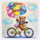 Pegatina Cuadrada Oso de peluche en bicicleta sosteniendo globos