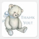 Dulce aspecto vintage acuarela oso de bebé con lazo azul alrededor de su cuello pegatina “Gracias”. Tan lindo para sobres de agradecimiento de baby shower.