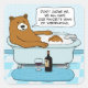 Pegatina Cuadrada Oso divertido bebiendo vino, relajándose en la bañ