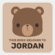Pegatina Cuadrada Oso marrón lindo con nombre personalizado