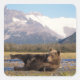Pegatina Cuadrada Oso marrón, oso pardo que se extiende sobre su esp