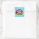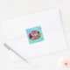 Pegatina Cuadrada Oso rojo panda sobre el cubismo turquesa