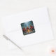 Pegatina Cuadrada Osos asando malvaviscos sobre una fogata