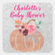 El cuarto de pegatina cuadrado de ducha de bebé, de otoño y moda, con una gran calabaza floral de naranja, fondo brillante de purpurina plateado y elegante escritura rosa caliente. Puede añadir fácilmente su nombre y texto personalizado y cambiar el color y el tipo de letra usando la opción personalizar!
