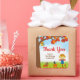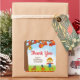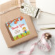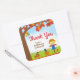 Este lindo y divertido pegatina cuenta con un espantapájaros en una camisa de manta roja y unos zambulles azules y un gorra. En el fondo hay un árbol con hojas de otoño, una casa de pájaro, una ardilla que arde por las nueces, un cuervo adorable sobre una calabaza y un hongo de toadstool. El texto combina guiones manuscritos y sans serif para un estilo elegante y moderno. Esto es perfecto para un cumpleaños otoño.