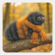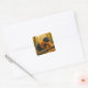 Pegatina Cuadrada Otoño Lana Oso Oso Otoño Vestido con una bufanda