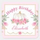 Pegatina Cuadrada Otoño Oro de Calabaza Rosa Feliz cumpleaños
