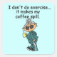 Mildred es una anciana de pelo gris con algunas opiniones fuertes de bonito! En este divertido diseño de temas de ejercicios ella dice "No hago ejercicio...hace que mi café se derrame". Camisetas, tazas, bolsos, tarjetas, pegatinas, imanes, cadenas de claves, ornamentos y más, seguro que te hará reír a ti mismo y a otros.