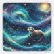 Pegatina Cuadrada Otter en un océano nocturno estrellado