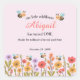 Celebrate your little one with this sweet “Our Little Wildflower” 1st birthday party Thank You sticker plates, featuring a soft pink background and a charming border of colorful wildflowers and buzzing bees along the bottom. Your child’s name is displayed in a beautiful script font in a coordinating floral shade, while the party details are set in an elegant serif font for a timeless touch. Designed to be easy to customize, this sticker is as practical as it is adorable.