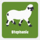 Crea una pegatina personalizada para decorar tus cosas, suministros para fiestas y más. Estas pegatinas de forma cuadrada presentan una ilustración de una oveja Valais Blacknose en negro y blanco sobre un fondo verde con tu nombre debajo en letras blancas y negrita.