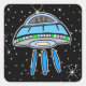 Pegatina Cuadrada OVNI azul con la estrella del espacio exterior noc