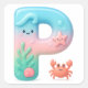 Pegatina Cuadrada "P" Cute Letter - Underwater Sea Creature