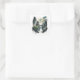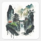 Un hermoso conjunto de pegatinas cuadrados que muestran un ilustracion de tinta de un paisaje de arquitectura antigua china y majestuosas cascadas.