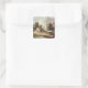 Pegatina Cuadrada Paisaje con iglesia, cabaña, pobladores y un