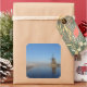 Pegatina Cuadrada Paisaje invernal con molino de viento y hielo