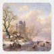 Pegatina Cuadrada Paisaje invernal con un castillo