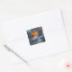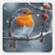 Pegatina Cuadrada Pajarito ladrón sentado en una rama en invierno