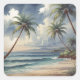 Pegatina Cuadrada Palm Trees Hawaiian Travel Honolulu Blue Sea