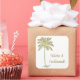 Dibujo de línea de Palma de coco con aspecto vintage, pegatinas personalizadas con nombre para bodas costeras, fiestas en la playa, cualquier evento con tema tropical