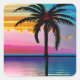 Pegatina Cuadrada Palmeras, gaviota y atardecer