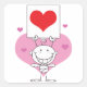Una figura pegatina cupido sosteniendo un corazón amoroso. Este diseño parece realmente efectivo en estos Pegatinas