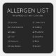 Un pegatina para que usted califique sus productos con una alerta y una advertencia a sus clientes sobre los alérgenos presentes en sus ingredientes. Por favor, no dude en modificar la lista según sea necesario para adaptarla a sus necesidades de país o industria. Se configura como una plantilla para facilitar su adaptación. El blanco y el negro son minimalistas y modernos, y están a la altura de los colores de los negocios, aunque también están disponibles en otros colores. Por favor, siéntase libre de enviarme un mensaje si necesita algún cambio. Me encantaría ayudar. Productos de coordinación y otros artículos comerciales para personalizados también disponibles en mi tienda.