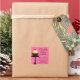 © 2015 Socialite Designs. Una caprichosa panadería de quequitos sella con un delicioso quequito y cereza en un puesto. El fondo tiene un patrón de burbuja rosa.