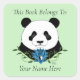 Pegatina Cuadrada Panda Bear Lotus Flower Blue Bookplate