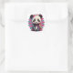 Un bonito panda con toques de colores vivos se sienta sobre un fondo sencillo, creando un ambiente lúdico y animado. Los ojos expresivos del panda y las mejillas rosadas le dan un toque de adorabilidad.